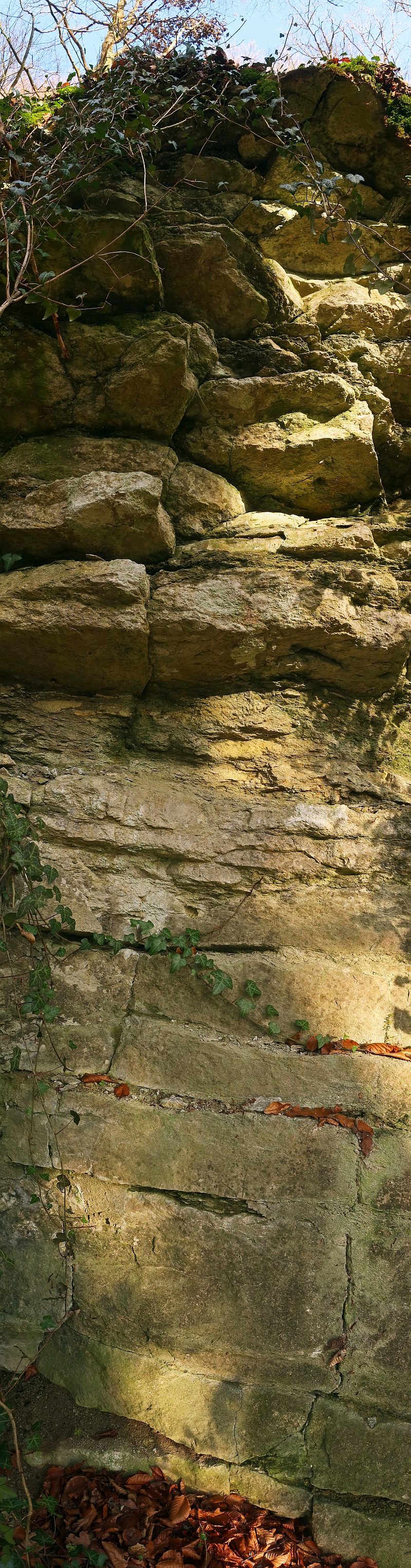 Plattenkalk In der zweituntersten Schicht des Weißjura (Malm Beta) liegt der Kalk in plattiger Form vor und wird häufig abgebaut, daher auch Werkkalk genannt. Hier ein Aufschluss am Albtrauf der Fränkischen Alb. Dezember 2025. Weiter