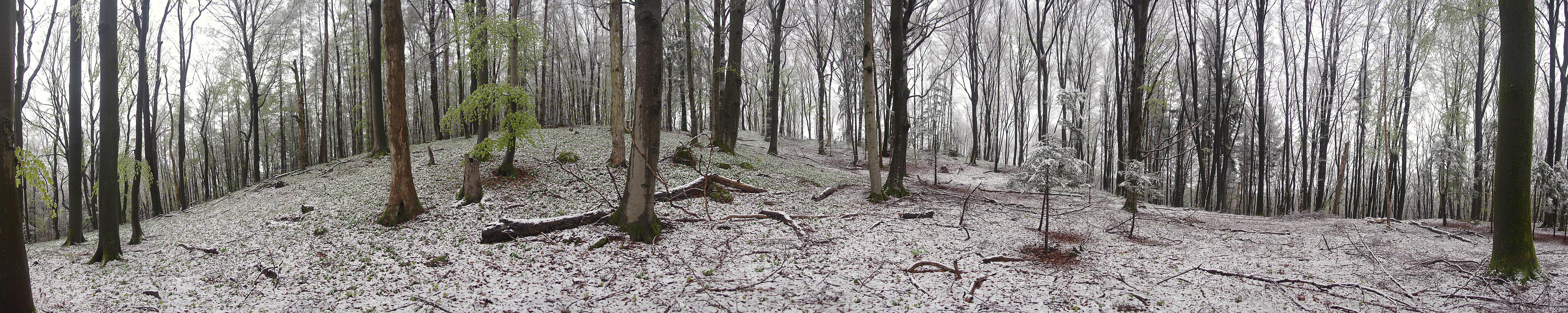 Nach einem Schneefall in der Fränkischen Alb nach Ausschlagen der Buchen.